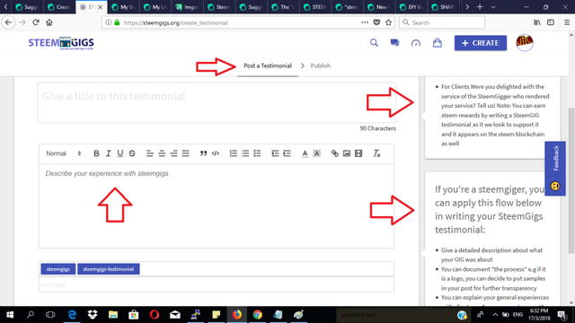 En lugar de simples 'revisiones', tendrá publicaciones testimoniales de SteemGigs en toda regla. (Esto ayudará a todos los participantes a crecer, servirá a los motores de búsqueda con más contenido de nueva generación, mejorará la reputación general y ayudará a los participantes a ganar recompensas por su contenido, etc.)