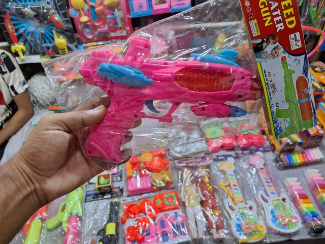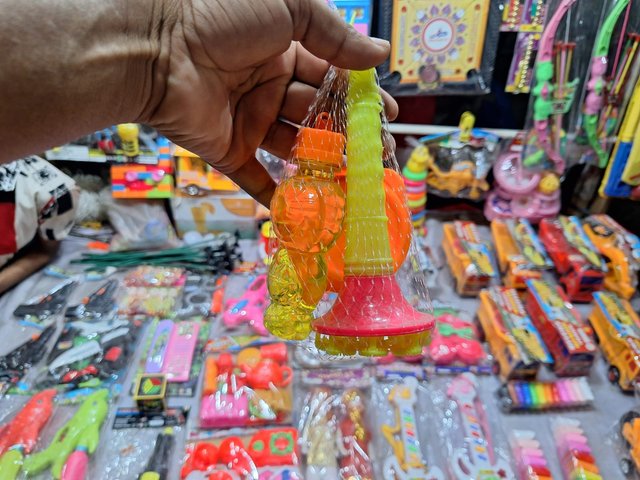 I often buy toys from these shops for my nephews and nieces, which are surprise gifts from me. Today I came to this shop to participate in this challenge and saw some toys. There are not many toys here, but there are many in small quantities. I say a lot because this shop is run by a student who is also a 7th grader. Although his mother sells them all day, he sits in this shop from the afternoon. I bought two toys from here that make a bubble, which I will take to my niece and nephew when I go to the village. I bought two toys for making bubbles, which cost 150 taka, although they initially asked for 200 taka.