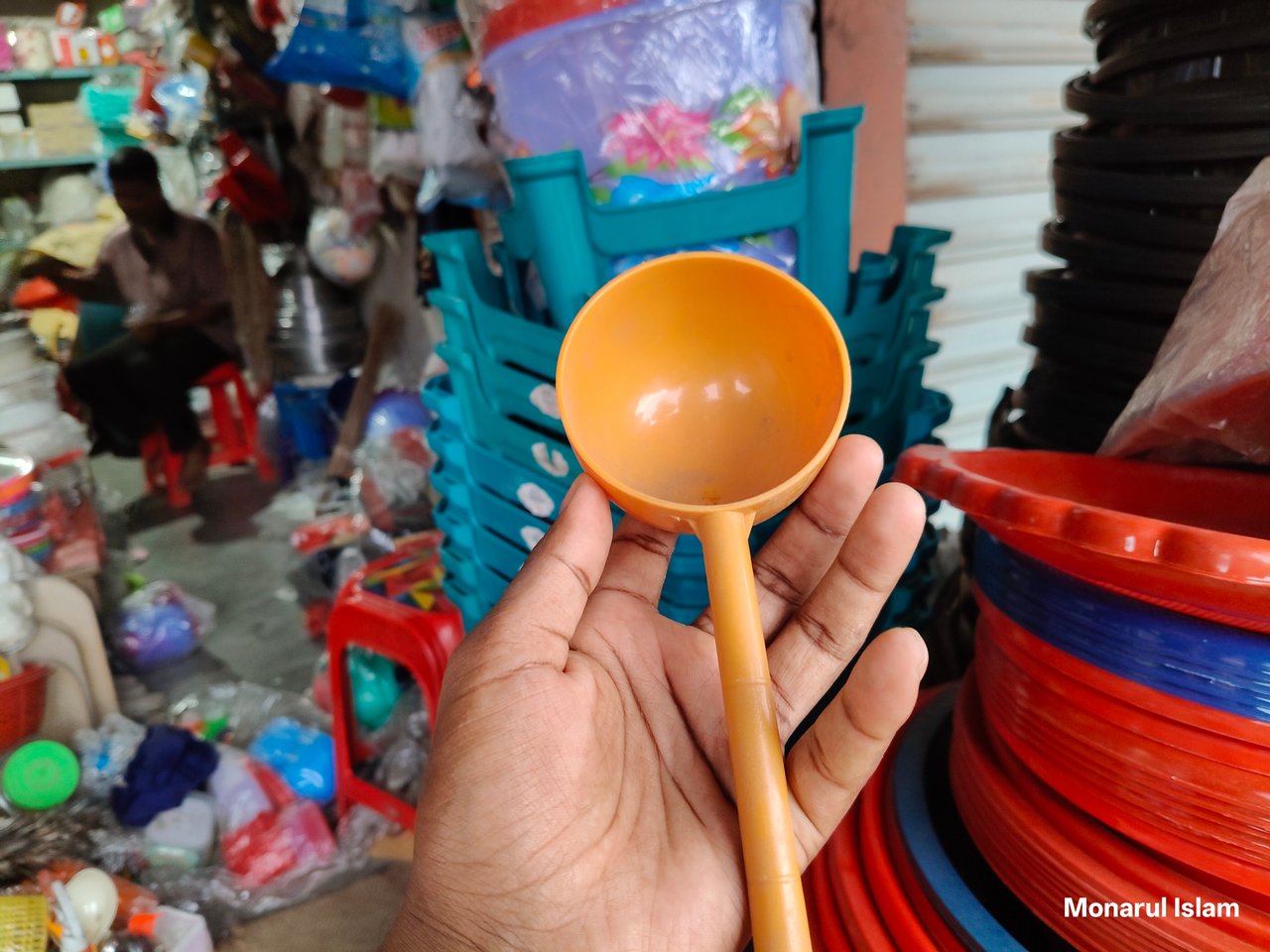 Zakir's Crockery Plastic Shop Located on the sidewalk by the road. These small businessmen on the side of the road are being neglected day by day, yet at the end of the day we buy various plastic furniture from them at low prices. Today, we have neglected the very ones from whom we benefit. There is a halal livelihood in business, no matter how small or low-quality the business is! Maybe he will not be able to take a place in a big supermarket, but he is serving people by selling various furniture on the sidewalks.