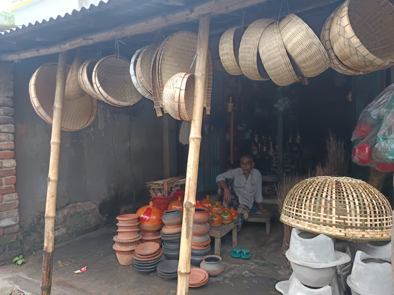 Yes, I have definitely bought many things from these shops many times. I really like these shops and these shops. But I especially like the clay products. I have been seeing them since I was a child. We used to cook food in those clay pots and eat them. Even now, for ages, many restaurants sell food cooked in those clay pots, which is why these shops still exist. The price of these clay products is not that high. They are sold in very small quantities. Moreover, there are many other products made of bamboo here. I bought a clay bank from this shop so that I can save money on the day of any medicine, but I can collect money from that bank again. I made a video and did my first journalism in my life. I talked about it and learned from the shopkeeper how he feels selling his products from this shop on the side of the road. Then he said it is very good because he has had his shop here for a long time. And during festivals, he does not have to go anywhere else. There is a very good sale from here. I am mentioning the prices of some products.