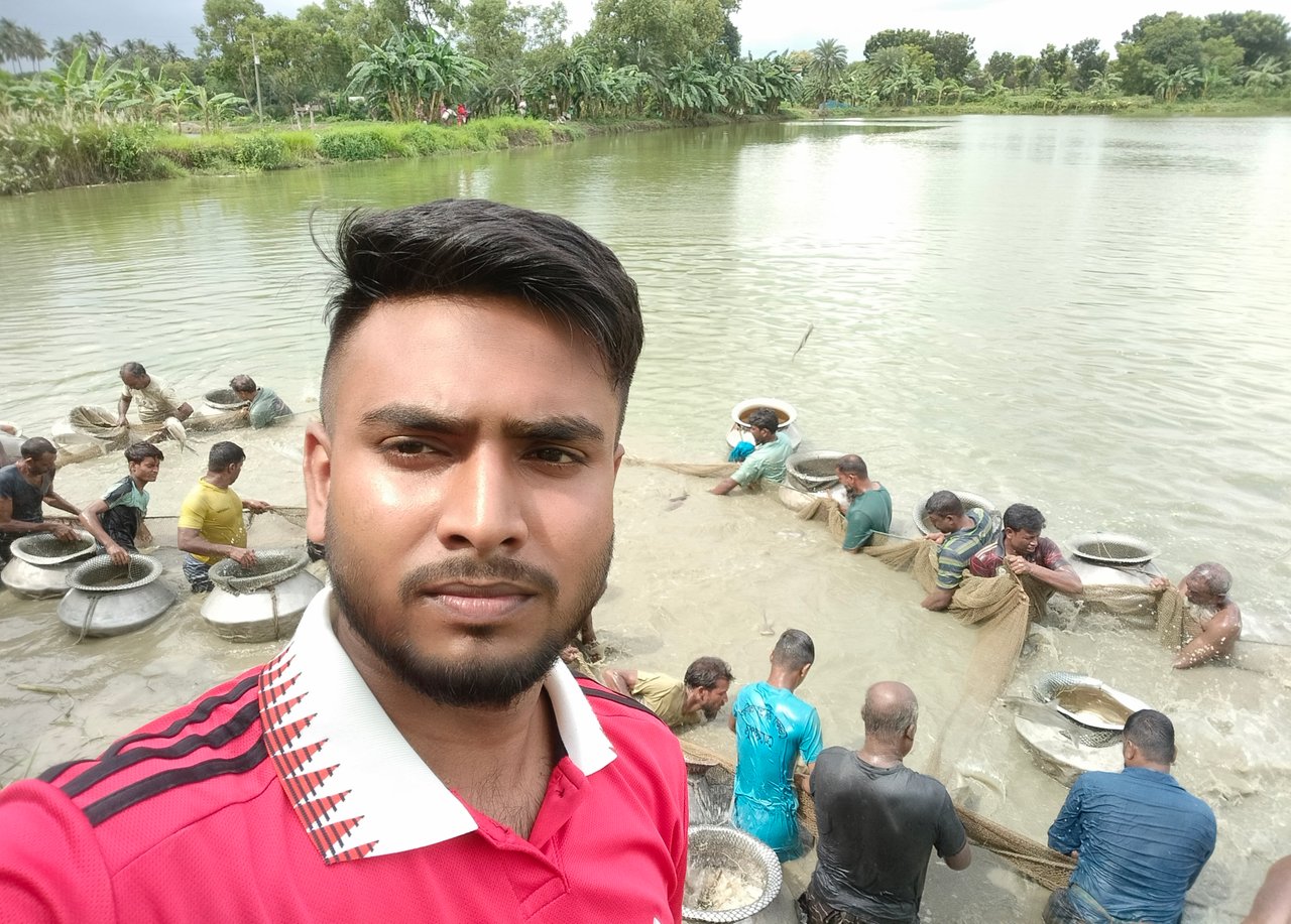 When I was standing by the pond and watching the fish carefully, I took a selfie of myself very beautifully. Actually, the moment of fishing was a different feeling for me. Actually, I had never seen such big fish before, when I saw so many fish in one place, a tide of joy flowed in my mind. Actually, such a big pond is not often seen, but my uncle has made three ponds together here, so the pond looked so big. I myself also felt really good watching fish fishing in such a big pond, and now when I am sharing my feelings with you, I feel even better.