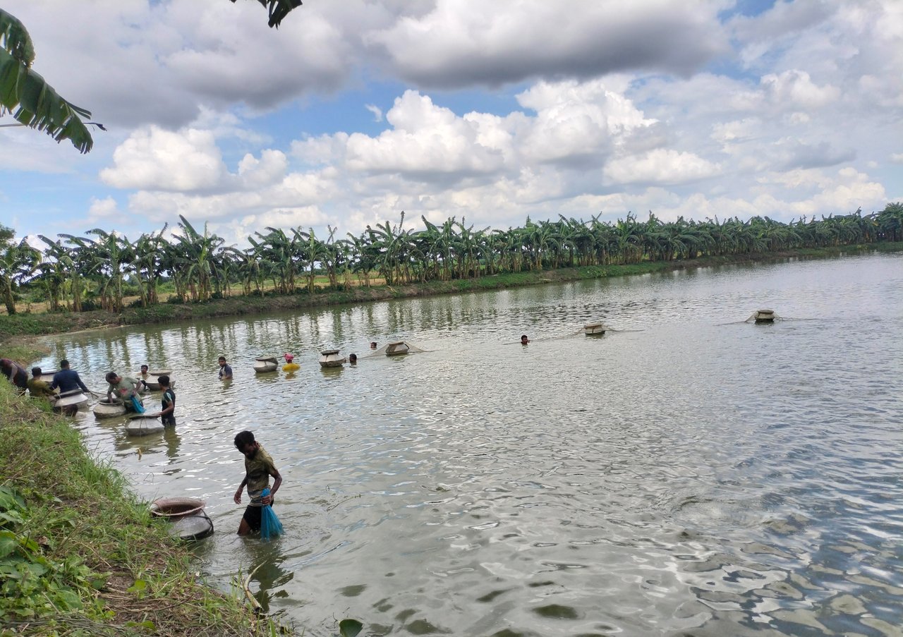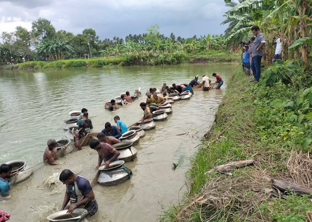 When the fishermen were fishing, many people gathered around my uncle's pond, as you can see in the picture. Actually, everyone likes to watch fishing. Now, the number of ponds in the rural areas has decreased a lot compared to before, so when they see fish, the villagers all come together and rejoice and watch the scene of fishing. I myself also liked watching my uncle's pond fishing. I myself always try to spend my time with pleasure and enjoyment.