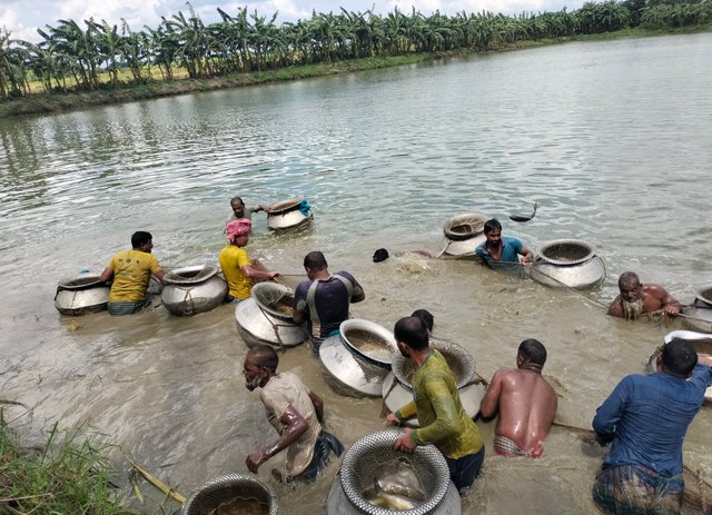 If you look above, you can see that the fishermen were all busy catching fish. At that moment, I captured some beautiful photographs on my mobile camera. When the fishermen were catching fish, the fish were jumping here and there, I really liked it. When all the fish in the pond come to one place in the net, the fish keep jumping after many months of crowding, I am trying to capture that moment beautifully on the camera and share it with you.