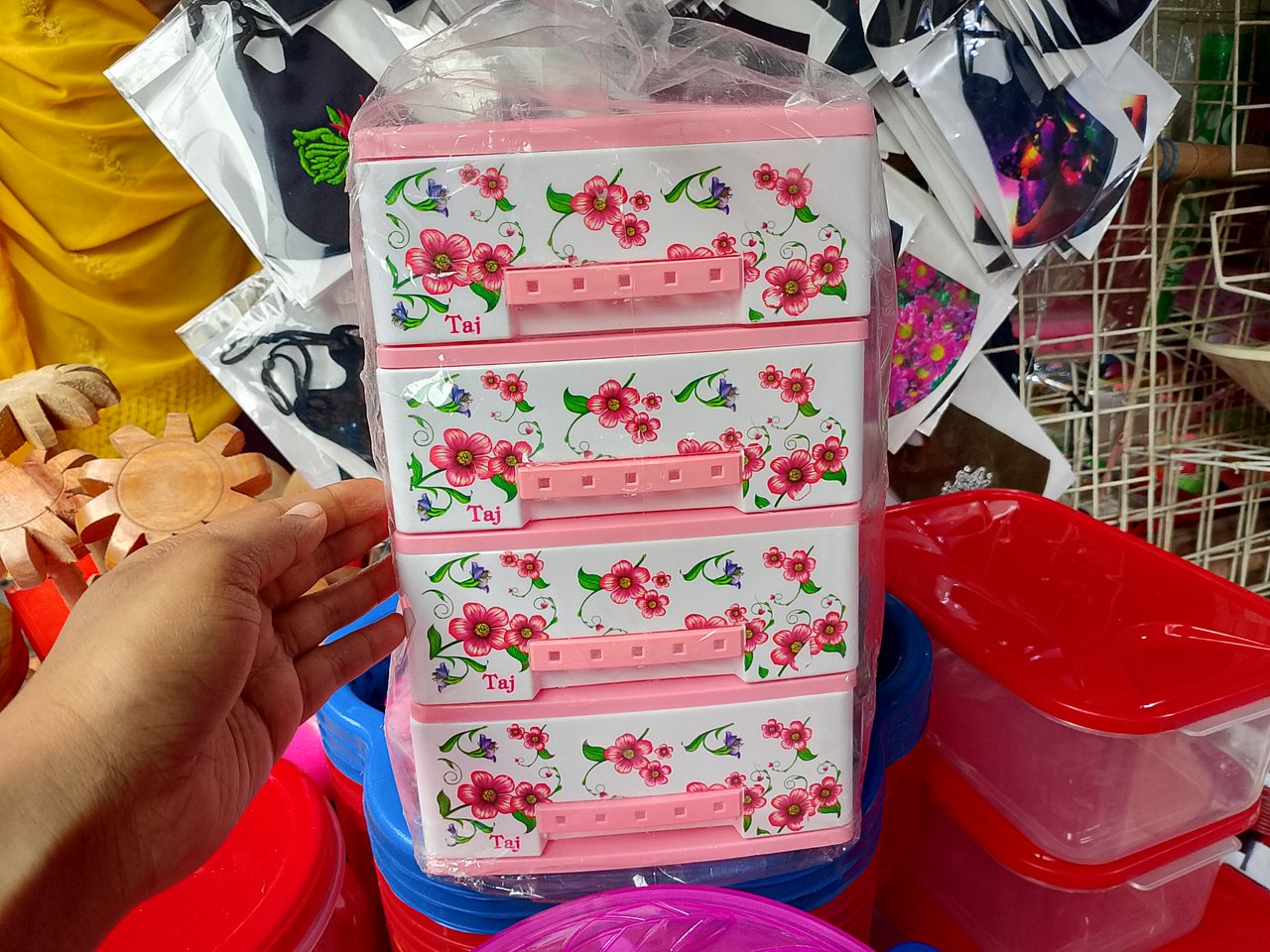 These items significantly impact our lives, such as the cooking ingredients that enhance the beauty of our cooking and are used in the cooking process. Additionally, various artistic dishes, utensils, and bowls in different shapes used for serving food are all intertwined with our daily lives.The plastic products from these small shops are very eye-catching; their various colors, shapes, and designs with floral patterns greatly influence the mind. Along with that, the products cater to the tastes of the buyers, which is why these items are becoming more and more popular day by day