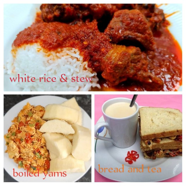 White rice and stew: this is almost the most common. It is simply prepared by boiling rice and pairing with sauce, stew or any soup.