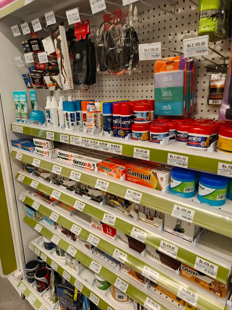En farmatodo todo está organizado por departamentos encontramos, cuidado personal, artículo para la piel, alimentos y víveres golosinas y snacks, cosméticos, artículos para bebé, artículos escolares, juguetes, todo para vacacionar Y por supuesto el área de farmacia dónde se encuentra todo tipo de medicinas.