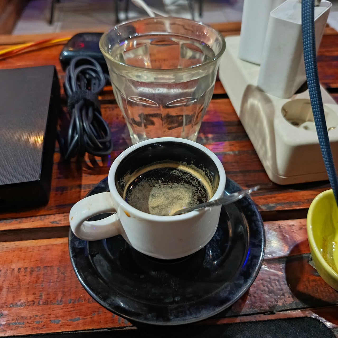 Setiap menit yang berlalu saya menikmati suasana sambil menjalankan aktivitasku yang ada di dalam laptop bersama rekanku di samping, juga sambil menikmati minuman espresso yang ada di atas meja.