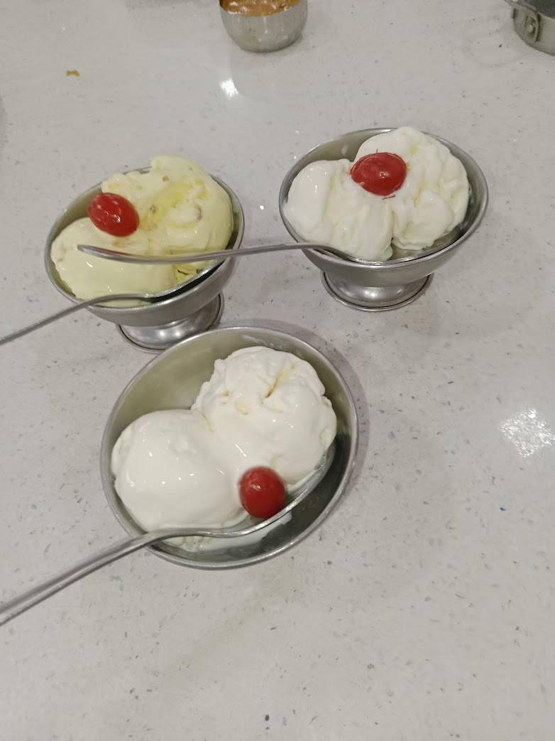 After eating, we ordered and ate ice cream desserts. I had vanilla flavor, and my kids had butterscotch. The ice cream was very delicious, and the quantity was large and satisfying.