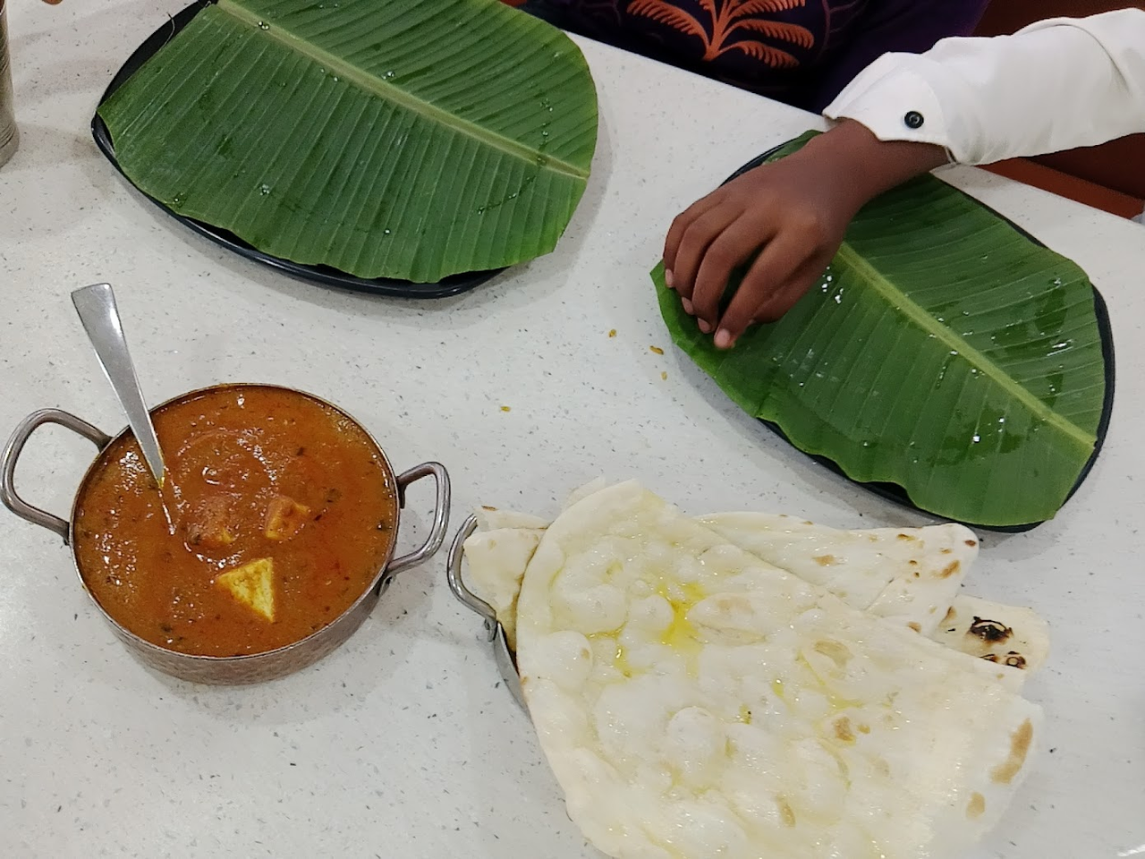 I had ordered chapati and guruma. My son and daughter together ordered paneer butter masala and naan (a kind of roti made with all-purpose flour). My husband had ordered paratha. The food was served hot within a short time of ordering. I took a picture of them, and then we all started eating. The food was very tasty.