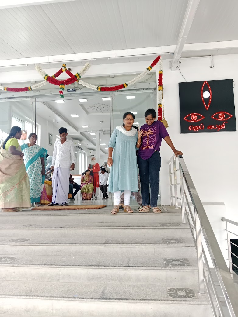 There was a traditional rangoli "Kolam" at the entrance to welcome everyone. The glass facade was visible, and the water flowing in a fountain was very beautiful. I took a picture of all of them. Their restaurant is decorated with flowers every day,, and theydecorative hangings are placed at the entrance every day, which gives us a sense of freshness.