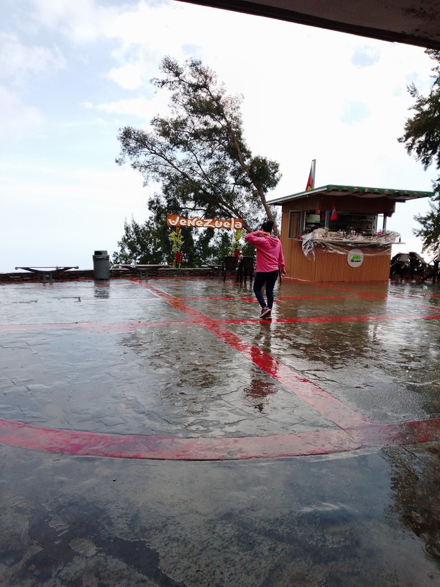 Al llegar arriba estaba lloviendo, pero fue por pocos minutos, se le dio al grupo fresas con crema y despues de eso comenzaron a caminar libremente por todo el paseo.