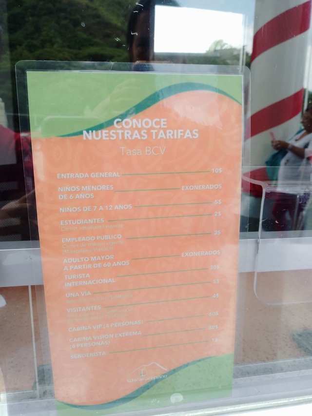 Mientras esperaba en la taquilla indague sobre los precios y los dias que esta abierto al publico el teleferico. Como mi grupo estaba ordenado y completo, nos pasaron rapidamente a realizar la cola para poder montarnos en las cabinas.