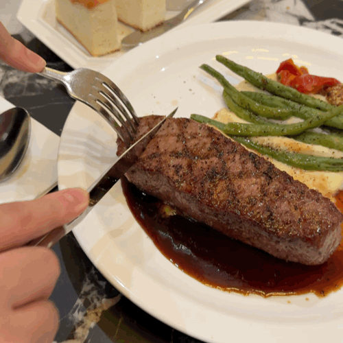 메쉬포테이토, 그린빈, 구운방울토마토가 가니쉬로 나오고 홀그레인머스터드로 깔끔한 맛이다. 고기가 두툼하고 익힘정도도 딱 적당해서 입맛에 딱이었다. 역시 고기는 진리라는 말이 있듯, 잘 구운 스테이크는 돈이 아깝지 않은 법이다.