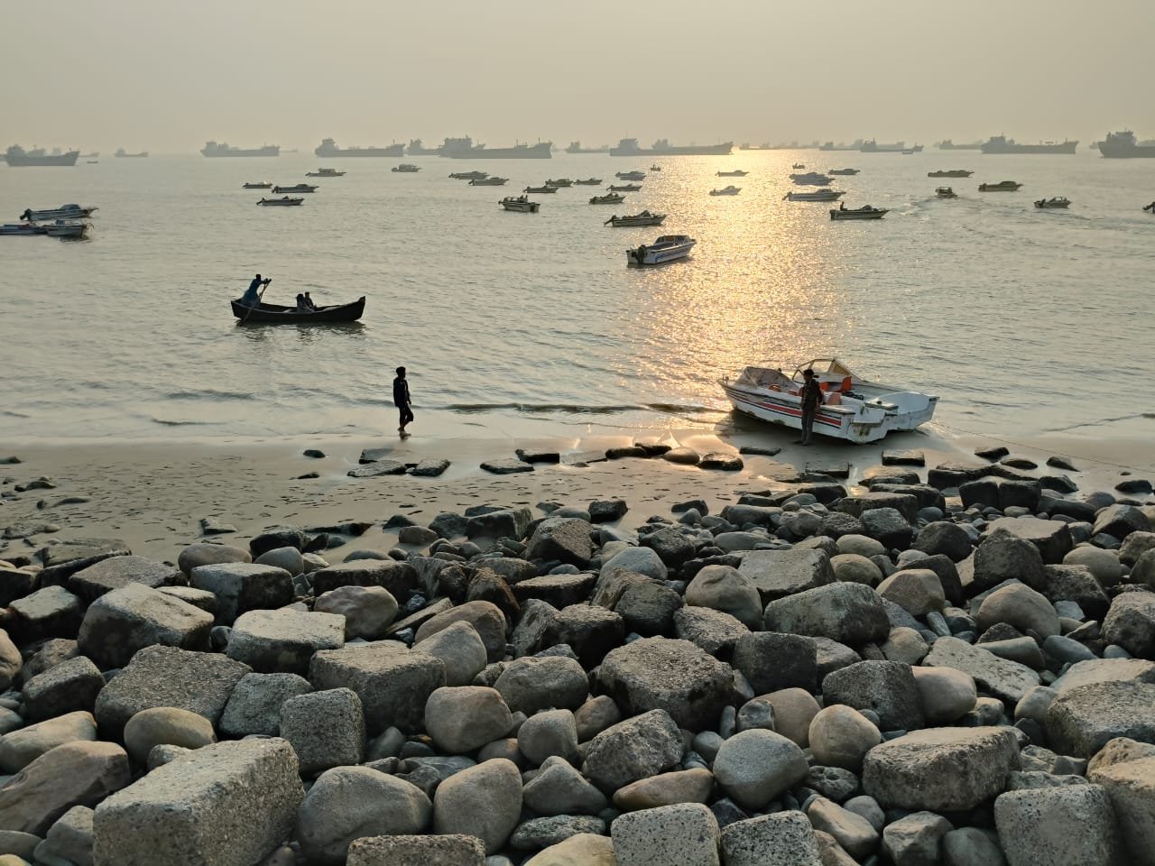We had tea and jhalmuri from some shops near the beach. That simple food also became priceless. Because, the atmosphere was different. It is difficult to find words to describe the beauty of the sea beach in Chittagong. The blue waters stretch as far as the eye can see. The sunlight is reflected in the water and shimmers. Fishing boats are floating in the distance, and fishermen are casting nets somewhere.