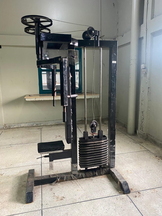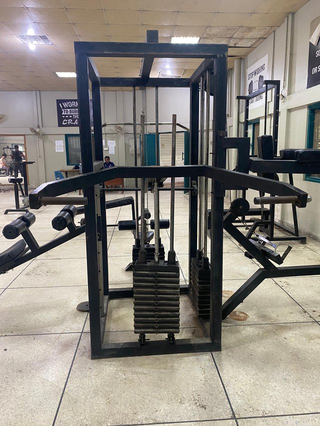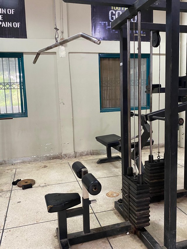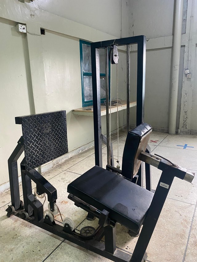 I also noticed a heavy looking machine which I could not identify at first Out of curiosity I asked a student and he told me it was the Legs Machine