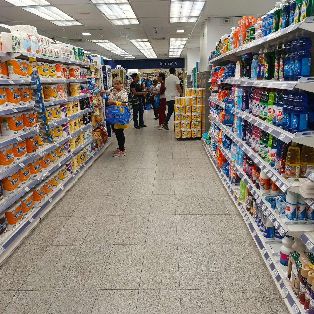Farmatodo-San Martín, es una farmacia no tan amplia como otras, al entrar podrás encontrar los carritos o cestas para que realices tus compras a gustos, también un cartel promocional a propósito de mes rosa, cabe resaltar que cuenta con espacios bien iluminados, organizados que brinda comodidad y confort, cada pasillo está identificado, cuenta lector de precios digital y alrededor de 8 cajas de pago para agilizar los procesos de pago. También brinda al usuario servicios de compras a través de su página web y por WhatsApp.