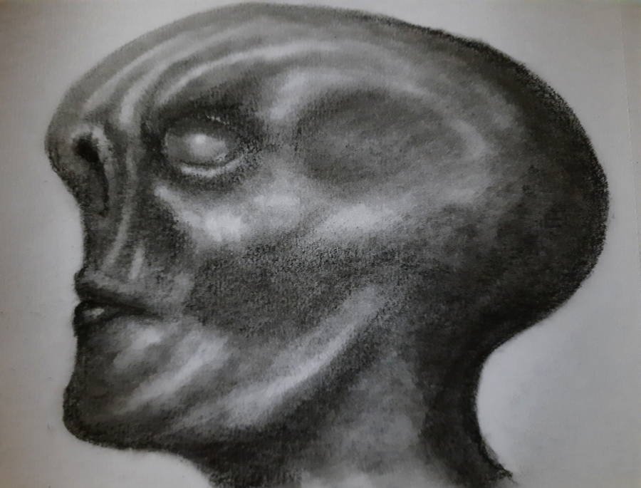 The process for this started with laying down a rough shape with a cotton ball and black pastel chalk, I then use a cotton bud to refine the shapes before using Staedtler Mars black pencils. (4B,8B)