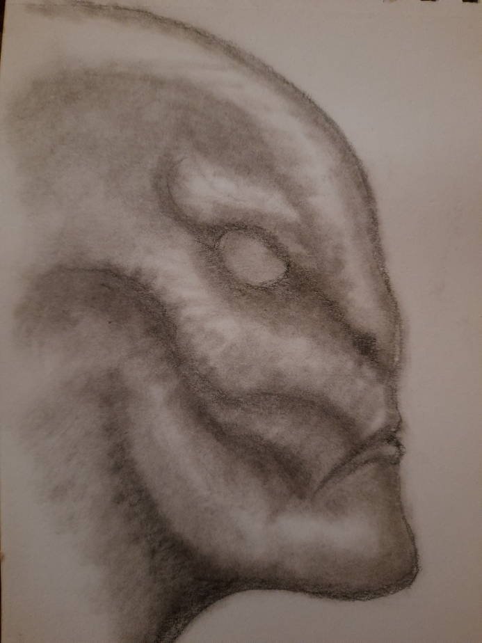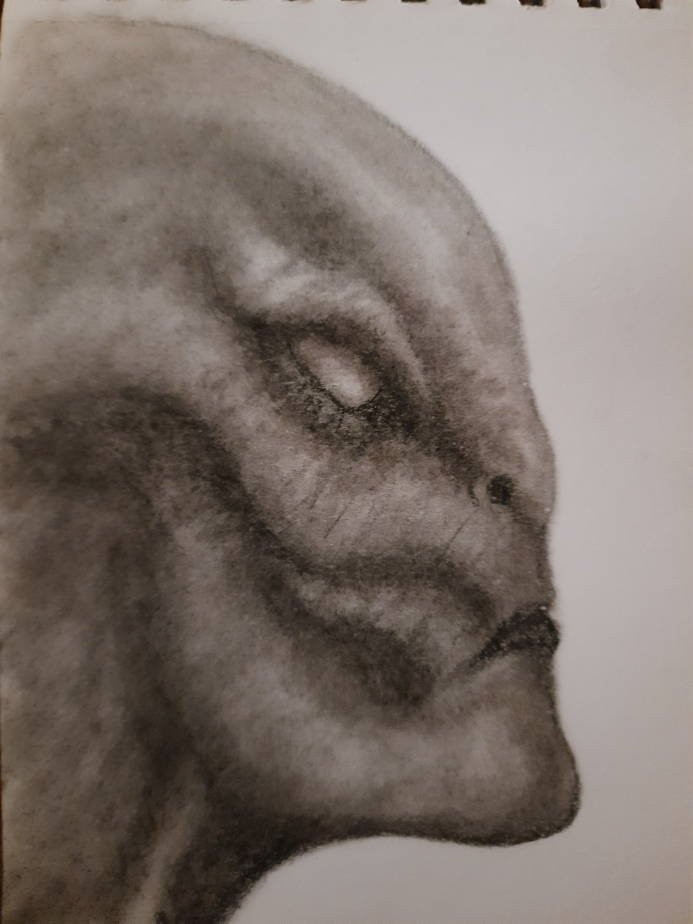 The process for this started with laying down a rough shape with a cotton ball and black pastel chalk, I then use a cotton bud to refine the shapes before using Staedtler Mars black pencils. (4B,8B)