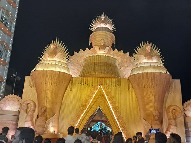 @winkles, what a fantastic glimpse into the Durga Puja celebrations in Kolkata! Your photos truly capture the artistry and detail of the Bhagwati Park pandal. The temple-inspired design with its blend of modern lighting and traditional materials like bamboo is striking. I especially loved your descriptions of the colors and the shonk-shaped domes. The pictures of the architecture really bring the scene to life.