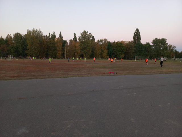 Темнеет на улице всё раньше и раньше. На стадионе нет никакого освещения (есть, конечно, фонари на территории, ещё со времён СССР, но они освещают заборчик с внешней стороны беговой дорожки и стену соседнего предприятия "Брянскпиво").