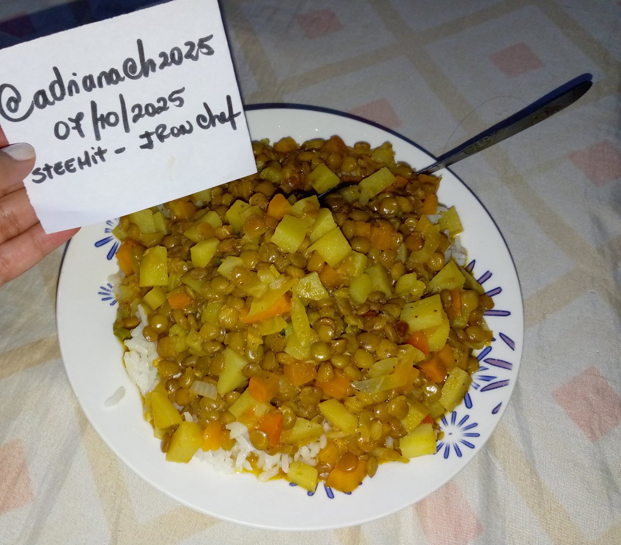Posteriormente realicé mi almuerzo a la 1 p.m Y almorcé Aproximadamente a las 2:40 p.m, realicé éstas lentejas, las cuales me provocaron mucho porque tenía tiempo que no comía, le coloqué verduras, pedacitos de cerdo y lo acompañe con arroz blanco.