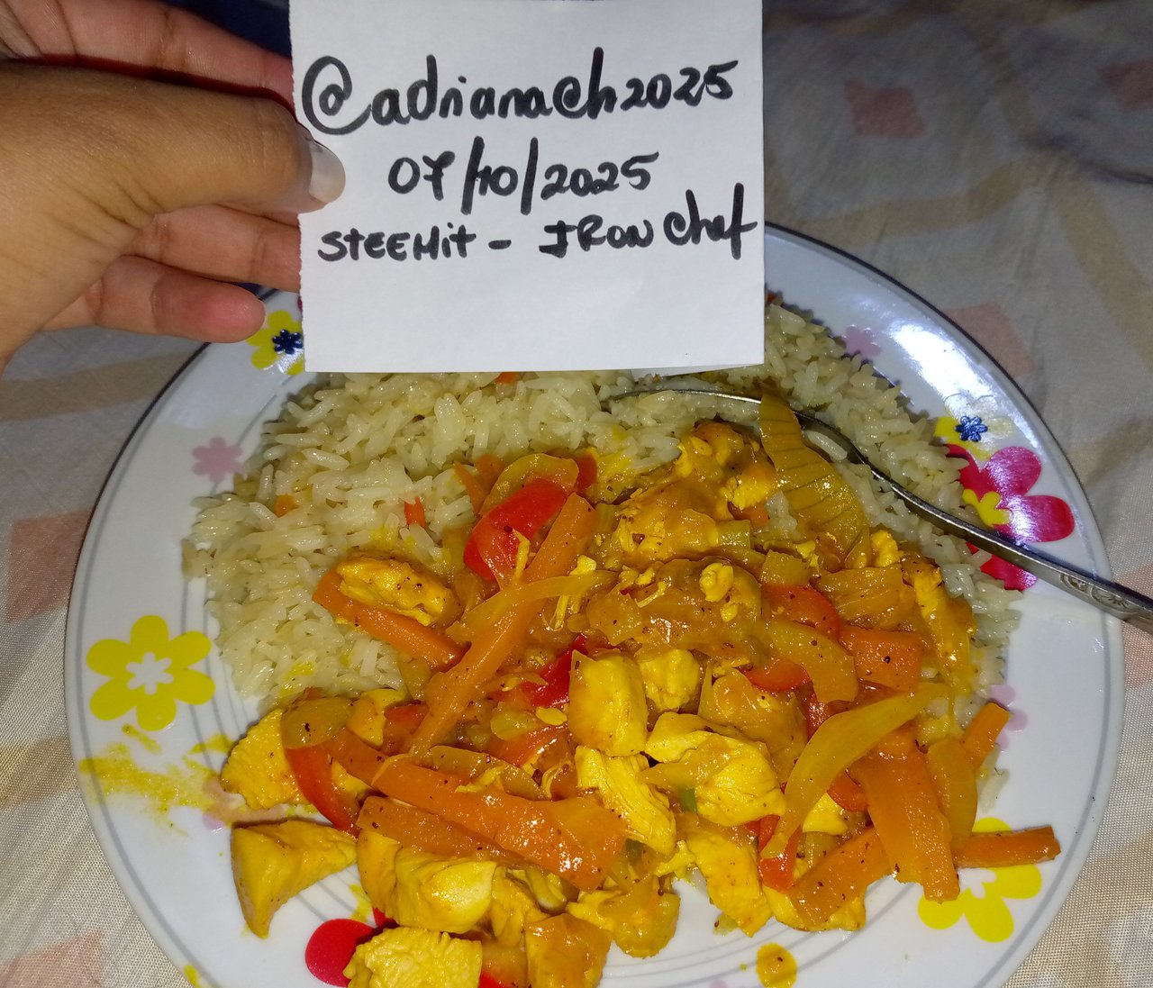 Al culminar mi jornada laboral me fui a mi casa a las 6:30 pm, al llegar descansé y luego realicé mi cena, hice arroz blanco nuevamente, porque la verdad no como casi harinas, pechuga de pollo sofrita con vegetales y jugo de mora.