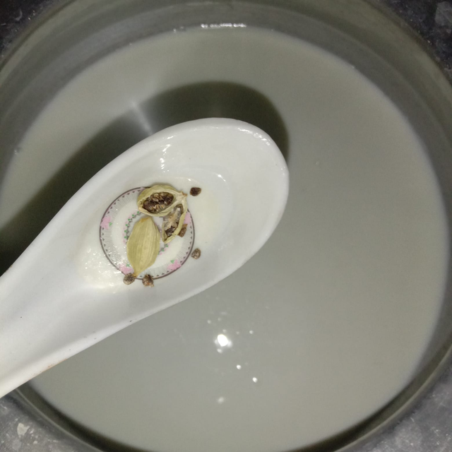 Our first step is to pour the milk into a pan and place it on the stove to boil it properly. While we are boiling the milk, we have to add two cardamoms to it. For the best taste, you can use it as per your choice.