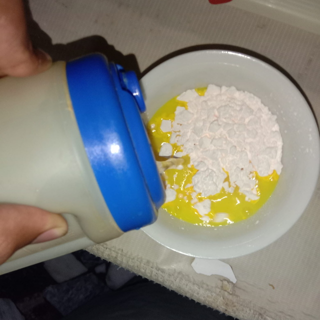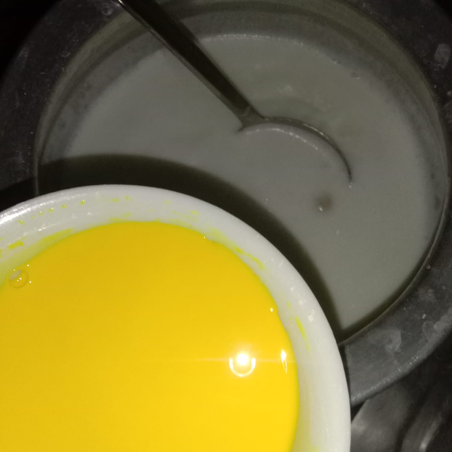 While our milk is boiling, we have to take a separate vessel and put the custard border in it. We will add a little water to the custard powder, or we will add a little cream and mix it well.