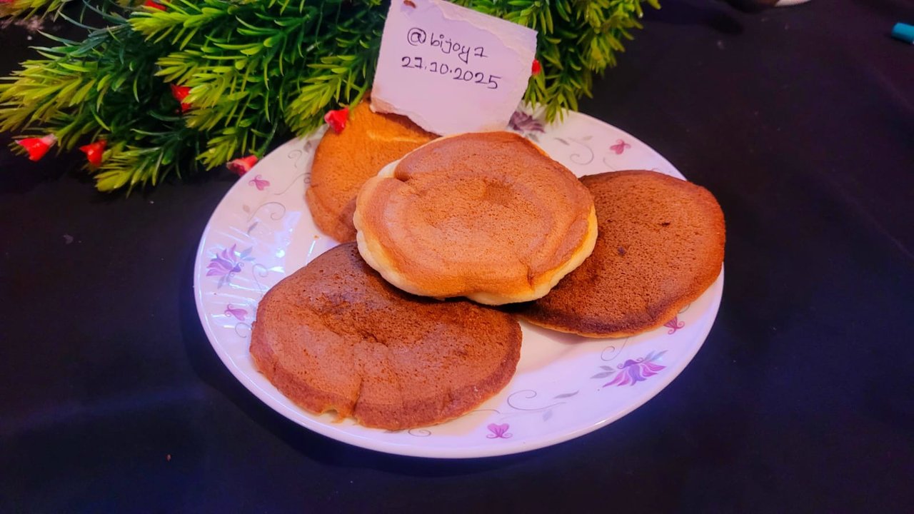 Now I put a frying pan on the stove and heated it for a while and poured the egg mixture in circles on the frying pan. After 7-8 minutes, when the bottom part was done, then I flipped them over to cook the other side. The other side was also done within 7-8 minutes. In this way, I made all the pan cakes and served them.