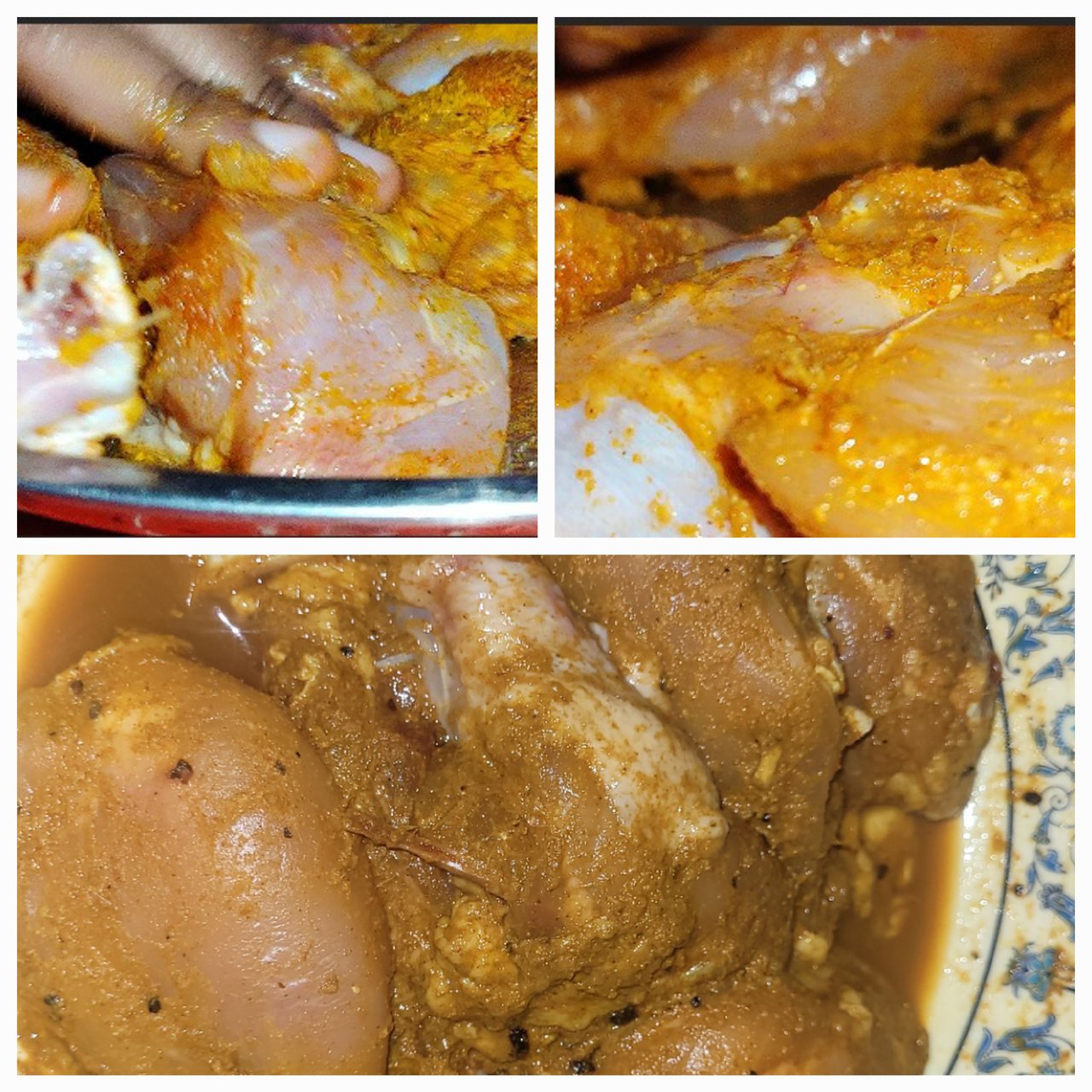 Then I added a little soy sauce which I didn't take a picture of. I marinated the meats well with soy sauce and kept them in the fridge for 2-3 hours. After two to three hours, I took them out again.