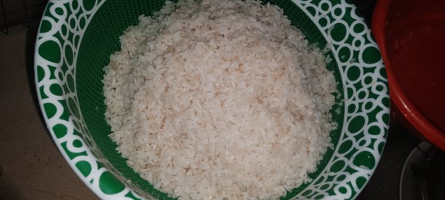 Parboil the rice, give it a quick wash, transfer it into a sieve to drain water and set it aside.