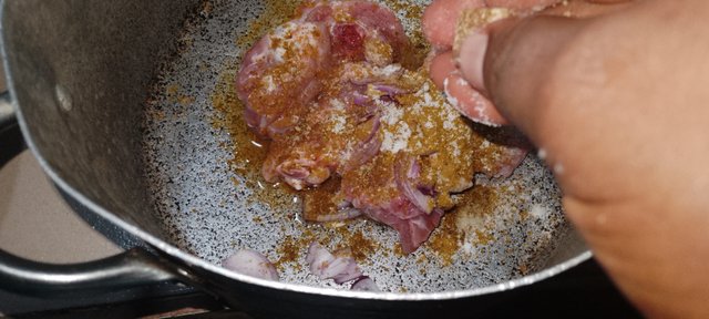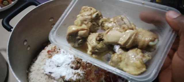 If you already have a brand of rice that is parboiled, just give it a wash maybe twice or thrice, drain and set it aside.Wash the chicken or any protein of your choice that needs to be cooked, season it with some of the mixed spices and onions, and add seasoning cube and salt to taste. Mix everything together until they are well combined and allow it to cook in its own juices for 5 minutes. After five minutes, add a little water to cook the meat until it's a bit tender.