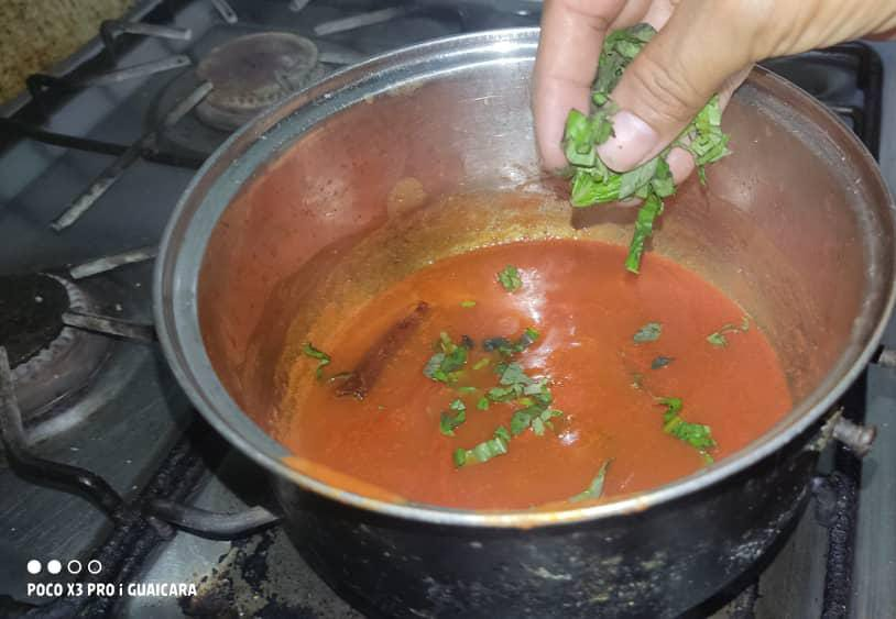 Finalmente, rectifiqué la sal, apagué y añadí la albahaca finamente cortada, tapé y dejé enfriar, esta forma, el vapor haría que las hojas desprendieran sus propiedades y rico sabor.