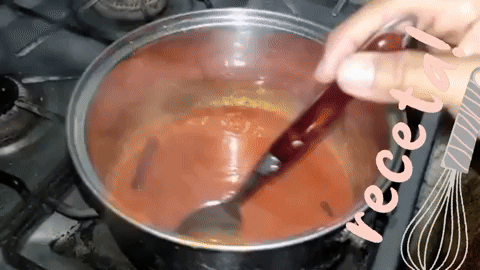 Luego, añadí el aceite con las especias al colado del tomate y lo llevé al fuego nuevamente para continuar con el proceso.