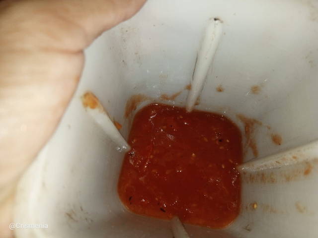 Luego, dejé que los tomates se enfriaran, los procesé en la licuadora y separé el líquido de las semillas y las conchas empleando un colador bastante fino.