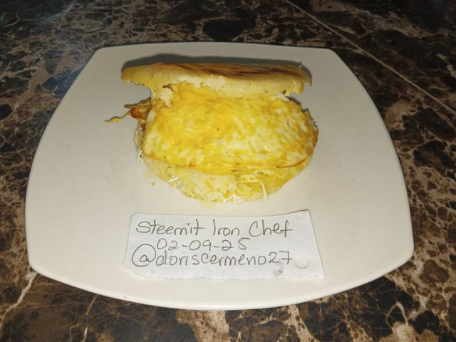 Y para cenar prepare nuevamente unas arepas asada con mantequilla queso y huevo frito me la comí con un gusto único pues tenía mucha hambre.