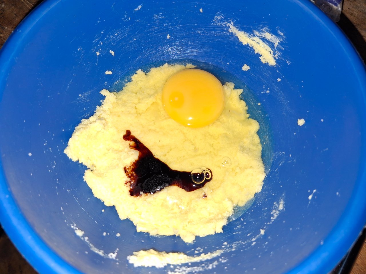 El siguiente paso es colocar el huevo y la vainilla, mezclamos.