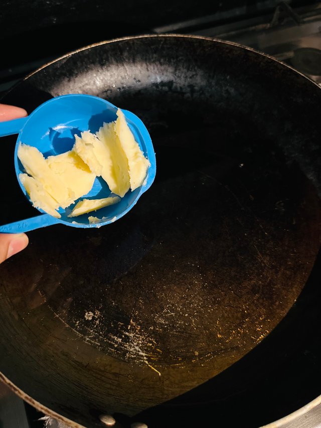 • First, I put a glass of water on fire and placed it on top. When it started to heat up a little, I added two tablespoons of butter to it.After that, when the water and butter started boiling again.