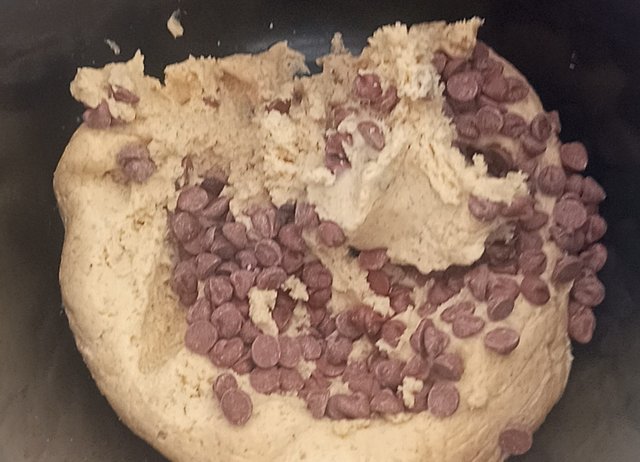 Cuando tenía la masa lista le agregué las chispitas de chocolate y la moví un poco hasta integrarlas completamente.