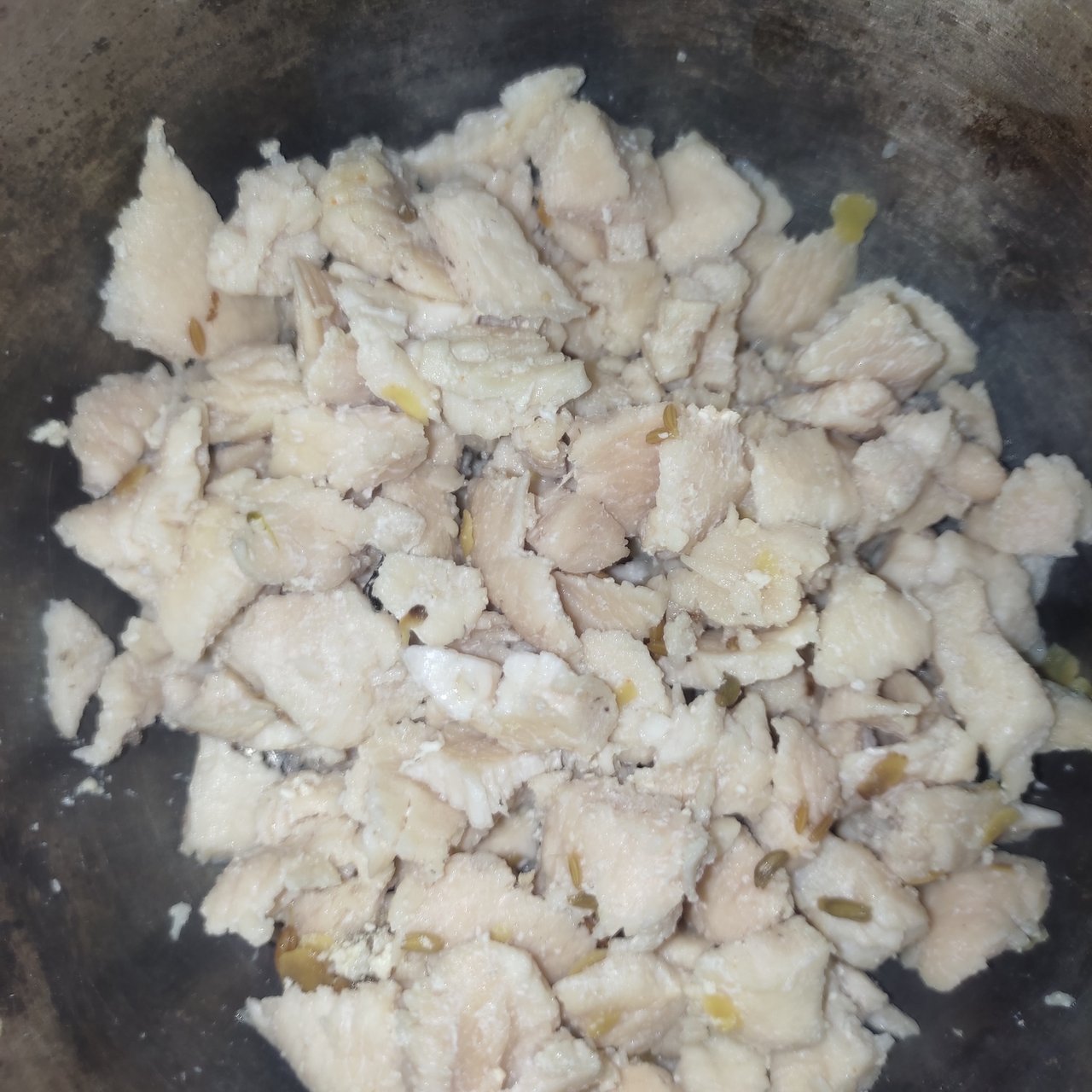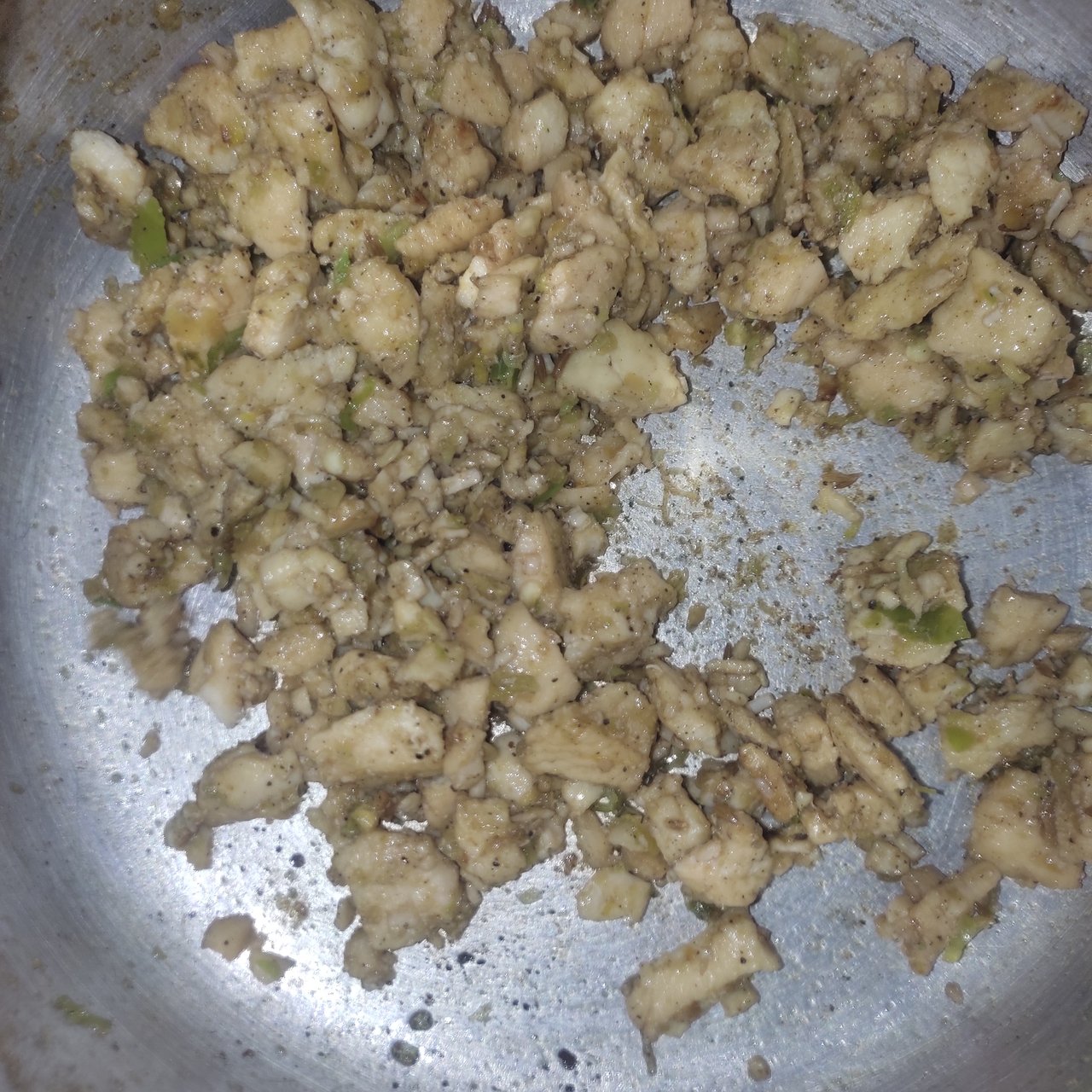 I have mashed green chillies to add spicy taste to the chicken filling.