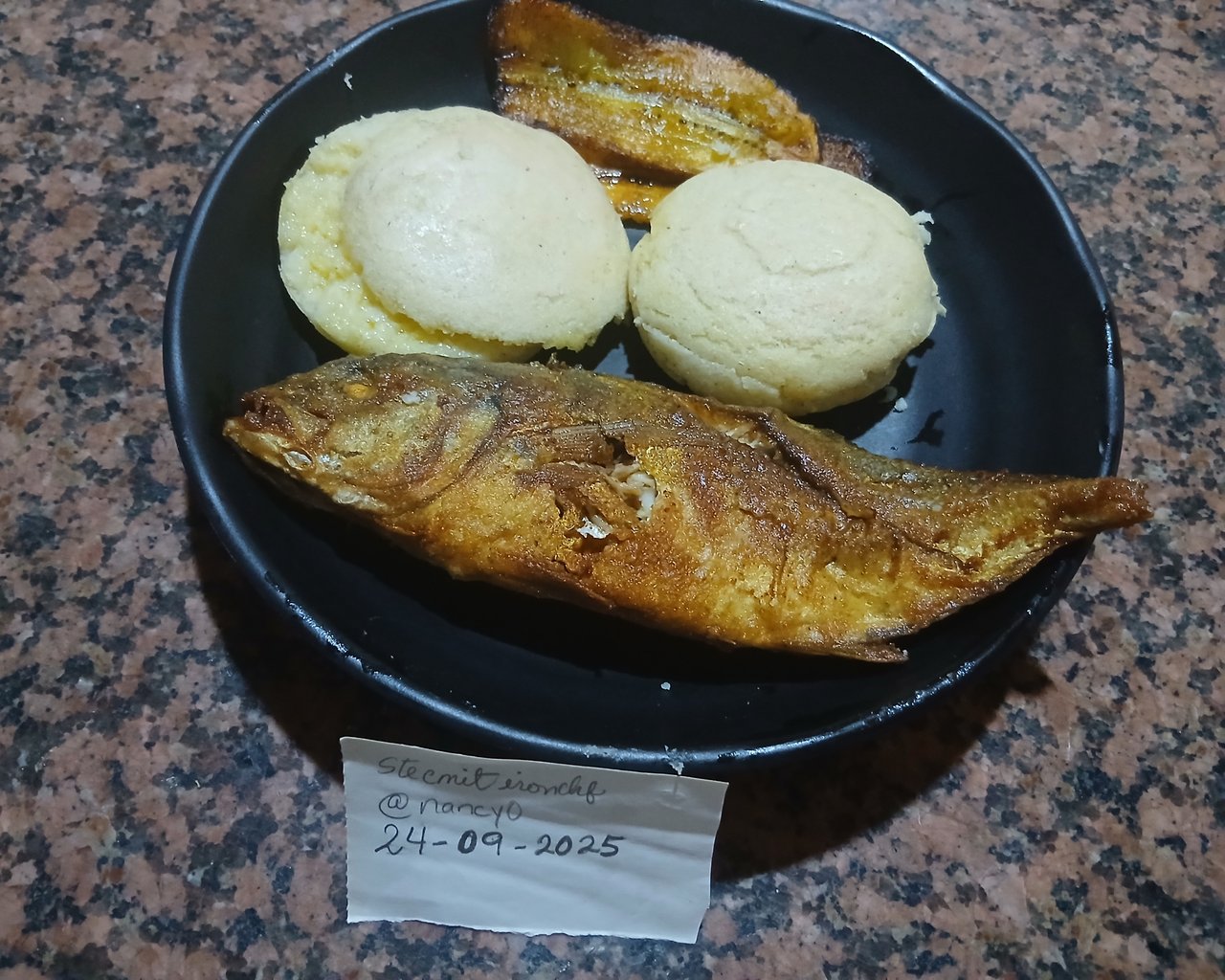 Para el almuerzo mi esposo trajo pescado fresco, y quise acompañarlo con arepitas porque pence qud tenia ocumo en la nevera y pues no me avordaba qud ya lo habia utilizado y en vista qud estaba montada sobre la hora lo mas dapido y facil era hacer las arepitas y acompañar con tajadas. El pescado estaba delicioso jugoso y con la combinacion de la arepita y tajada, no me hizo falta el ocumo ni la ensalada aun siendo estos mis contornos perfectos.