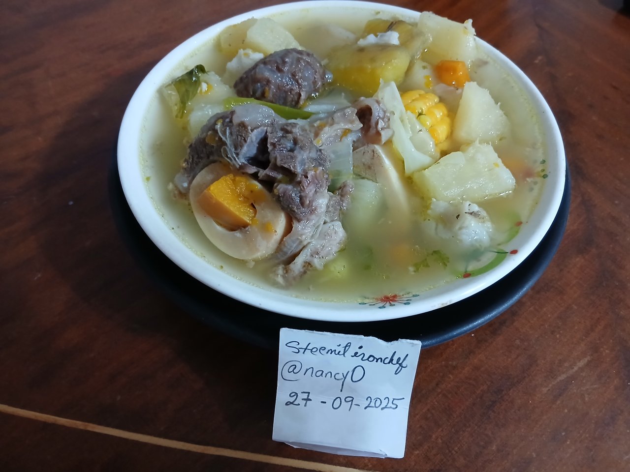 Antes de salir en la mañana monte ablandar el lagarto de res lf deje las indicaciones a mi hijo dd estar pendiente y apagar en diez minutos, qud al yo llegar md encargaria de lo demás, antes de llegar a casa pase comprando la verdura para la sopa, entre ellas la auyama, el ocumo chino, ocumo blanco, tambien encontre mi verdura favorita la batata, yuca y ñame. Al llegar revise el lagarto y estaba blandito, pele la verdura y me encargue dd terminar la sopa. Quedó divina y le cayo buenísimo a mi hija que anda con gripe.