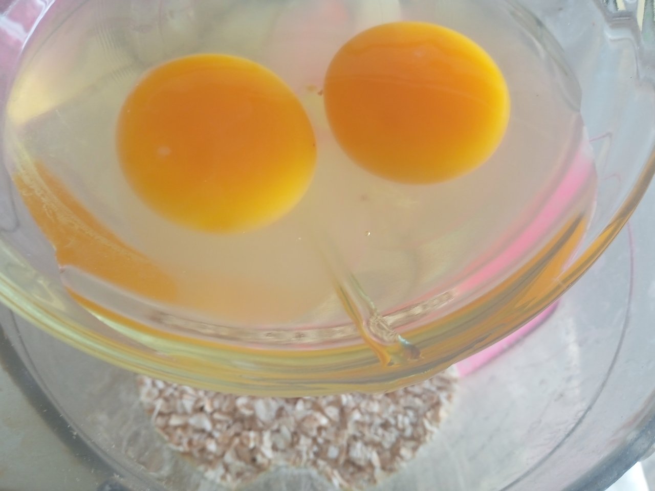 Teniendo los ingredientes en mesa, busque la licuadora, le agregué la avena y después dos huevos, junto a dos cucharadas de vainilla, licue bien.