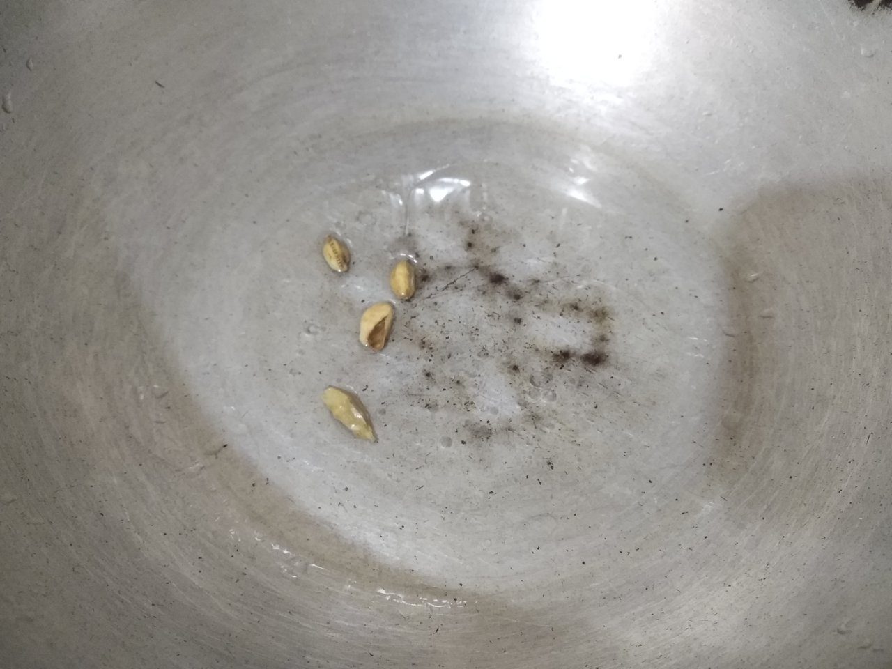 After preparing all the ingredients, I will put a pot on the stove. In it, I will add half a cup of oil. When the oil is a little hot, I will add 3-4 cardamoms.