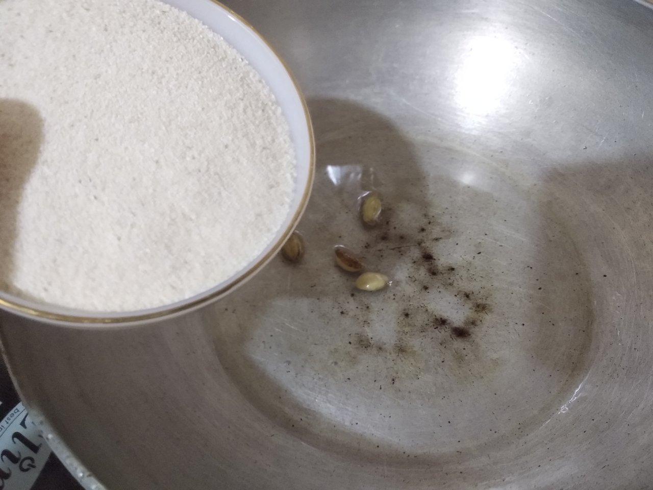 When the smell comes out of the cardamom, I will add the semolina on it. adding the semolina, I add a pinch of salt to enhance the taste. Then I will roast the semolina for 5-7 minutes.Which increase the taste of pudding.