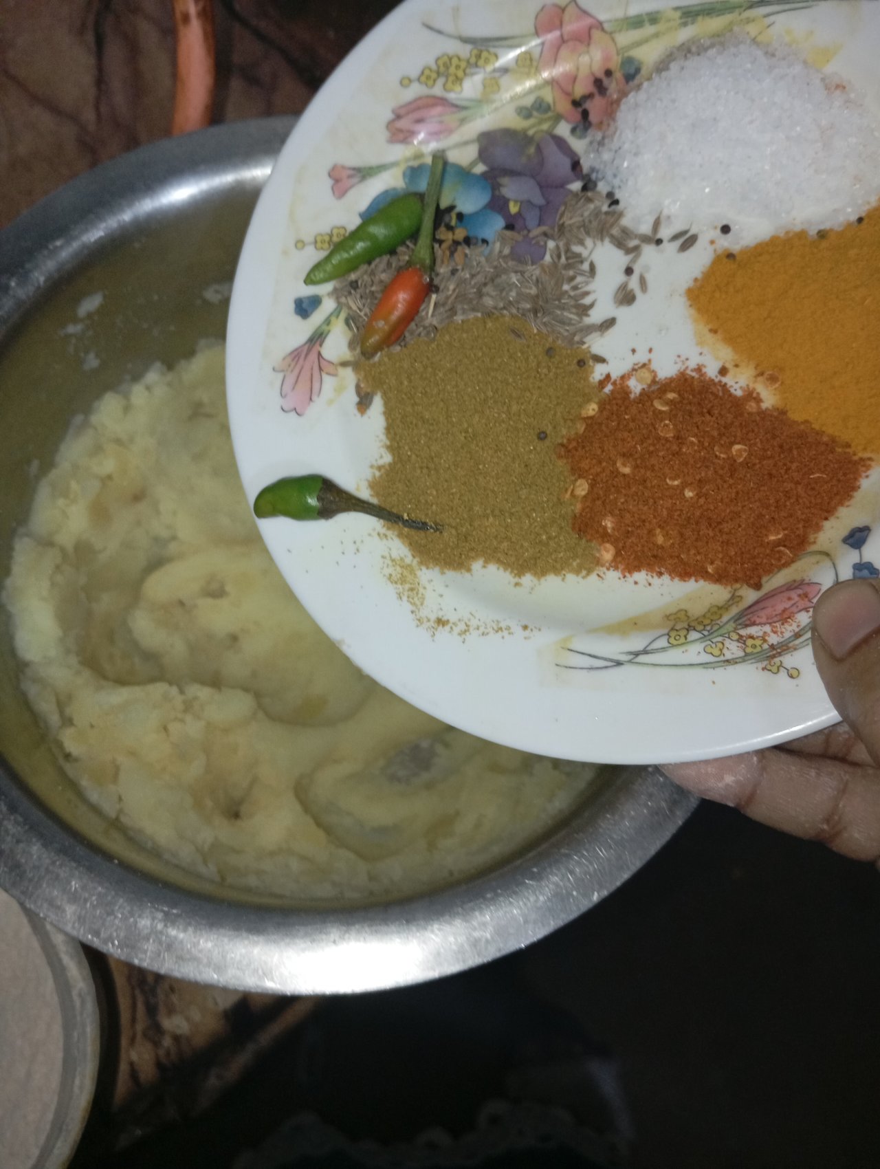 Mashallah the potatoes in masher the add all the spices when I mention to the ingredients list .mixed well properly .