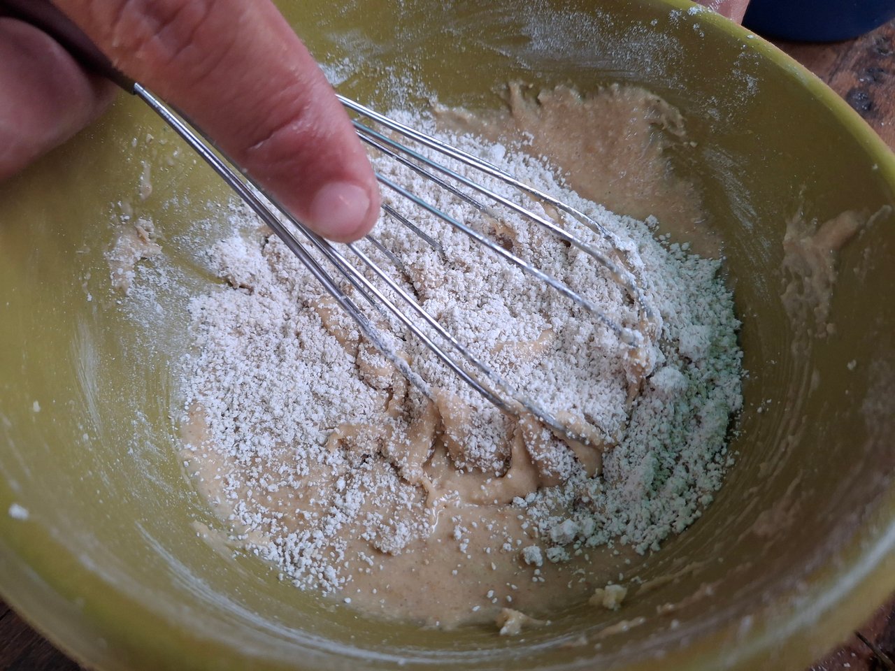 Por último le fui colocando la avena e iba revolviendo también agregue polvo para hornear y lista la mezcla.