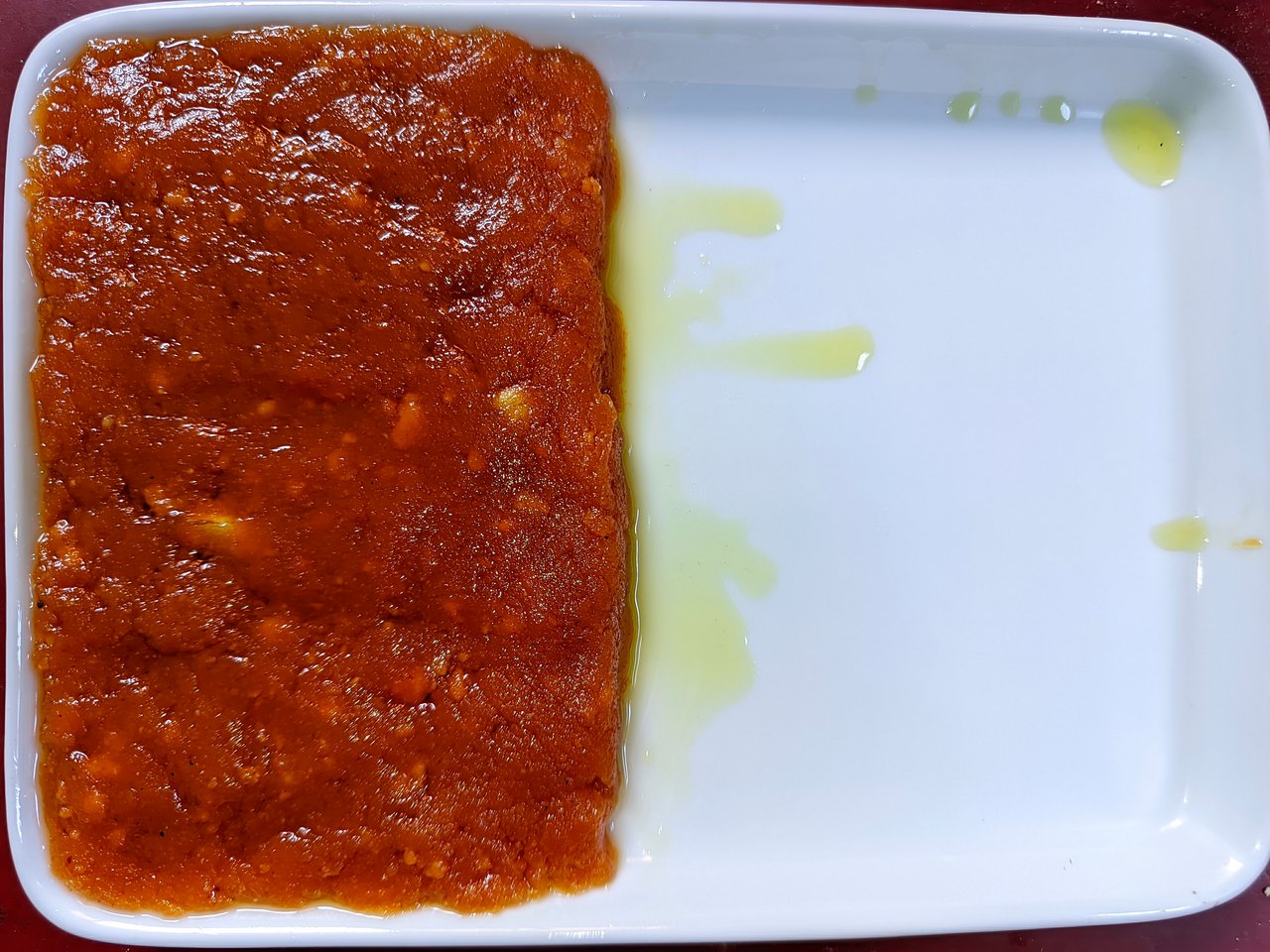 Now I poured the entire mixture into the container in which I would make the dessert. Within a few minutes of pouring the mixture into the container, it solidified, then I added some nuts on top of it for decoration so that the gram flour barfi looked more attractive.