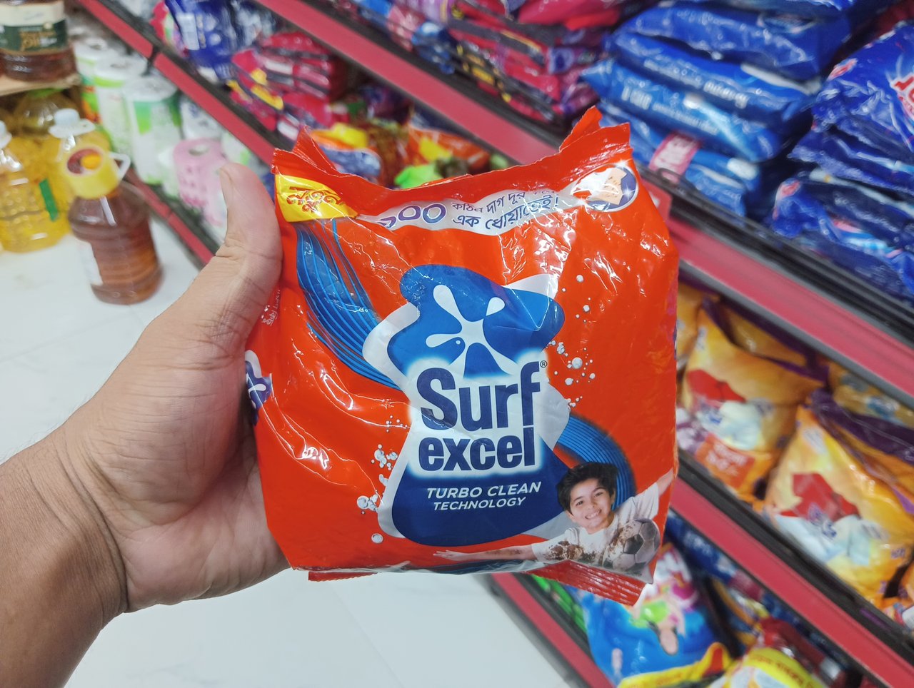 Then here I saw different types of spice products. Where I have already seen different types of spice food, all packaged in very high quality. Every spice is here to use spices with any food. Then there are different types of powders from different companies for washing clothes. Since I like Surf Excel from Unilever Company, I decided to purchase Surf Excel.
