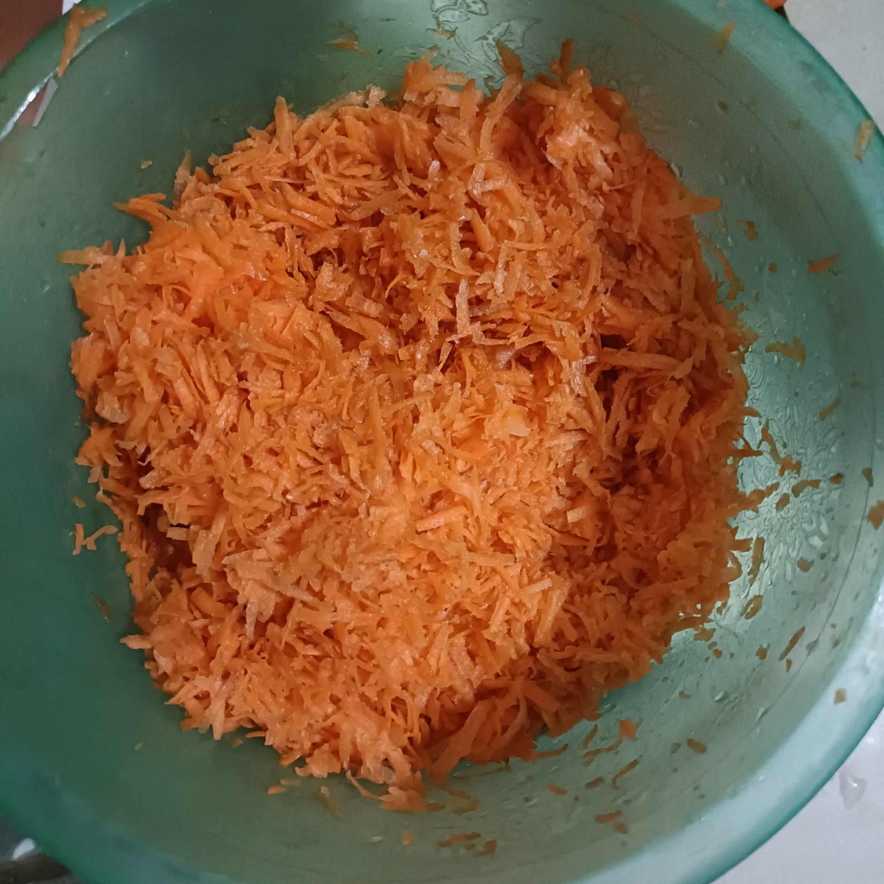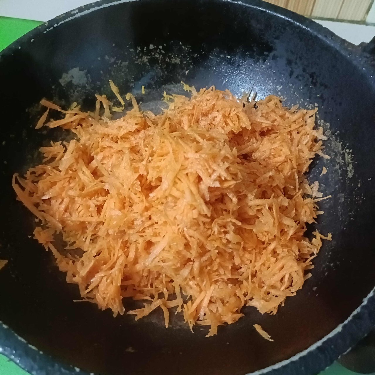The carrots need to be fried well in oil. Here I fried the carrots for about five minutes, which will make them a little soft.